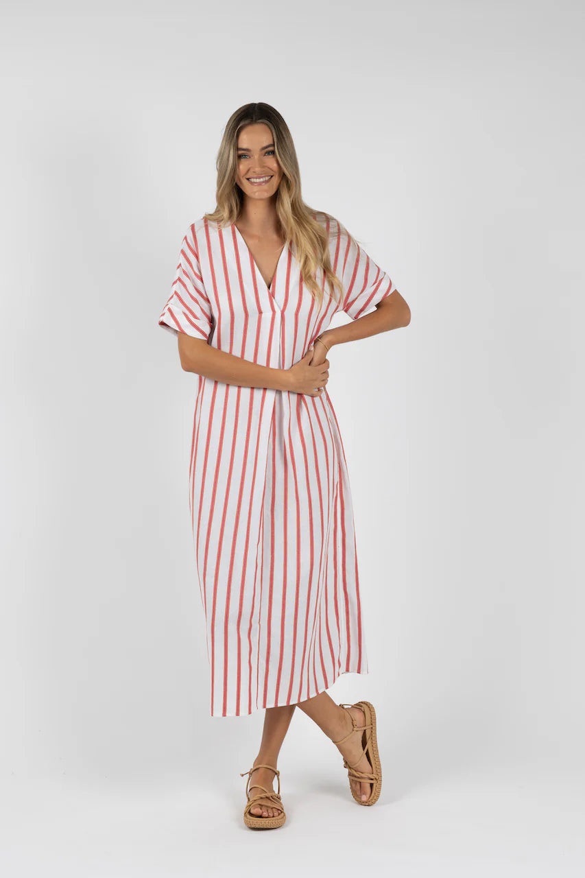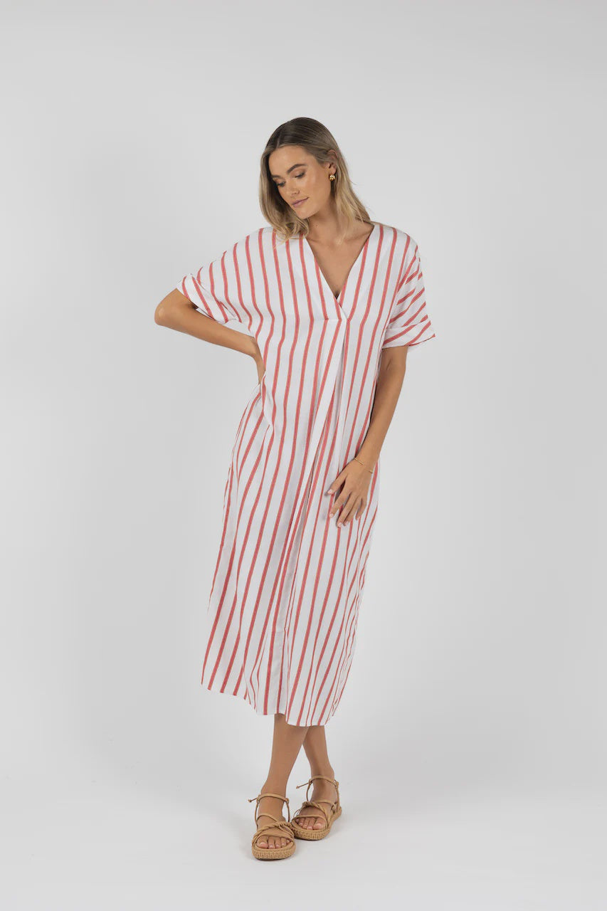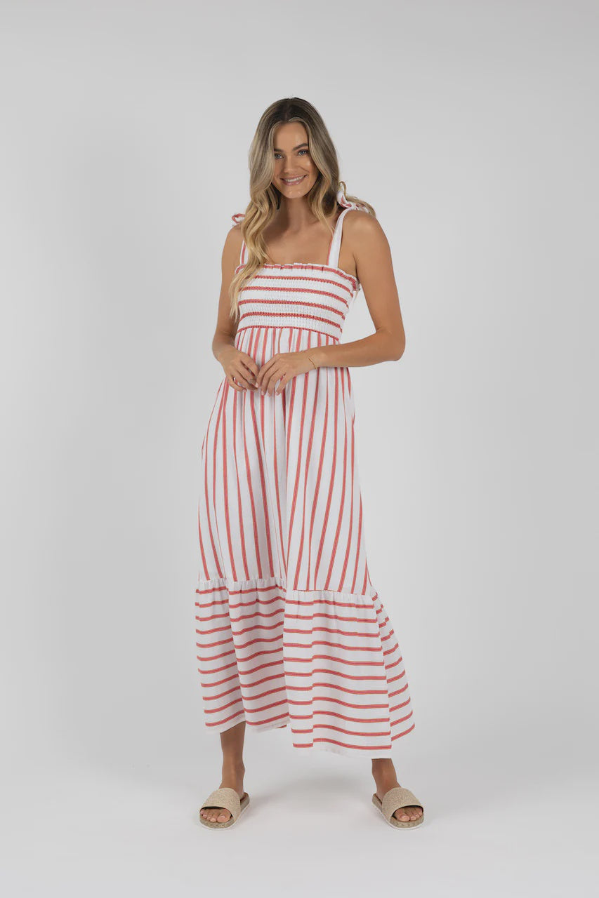 Santos Shirred Dress / Pink Stripe