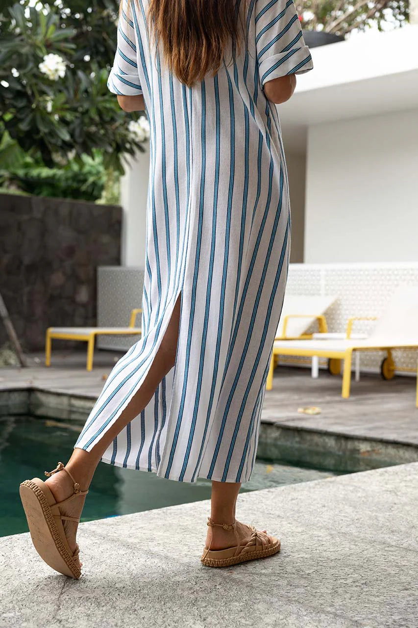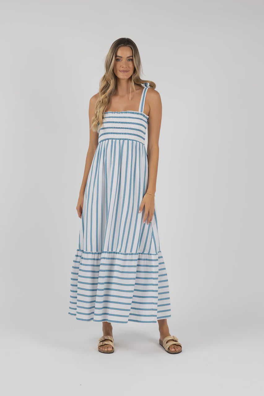 Santos Shirred Dress / Blue Stripe