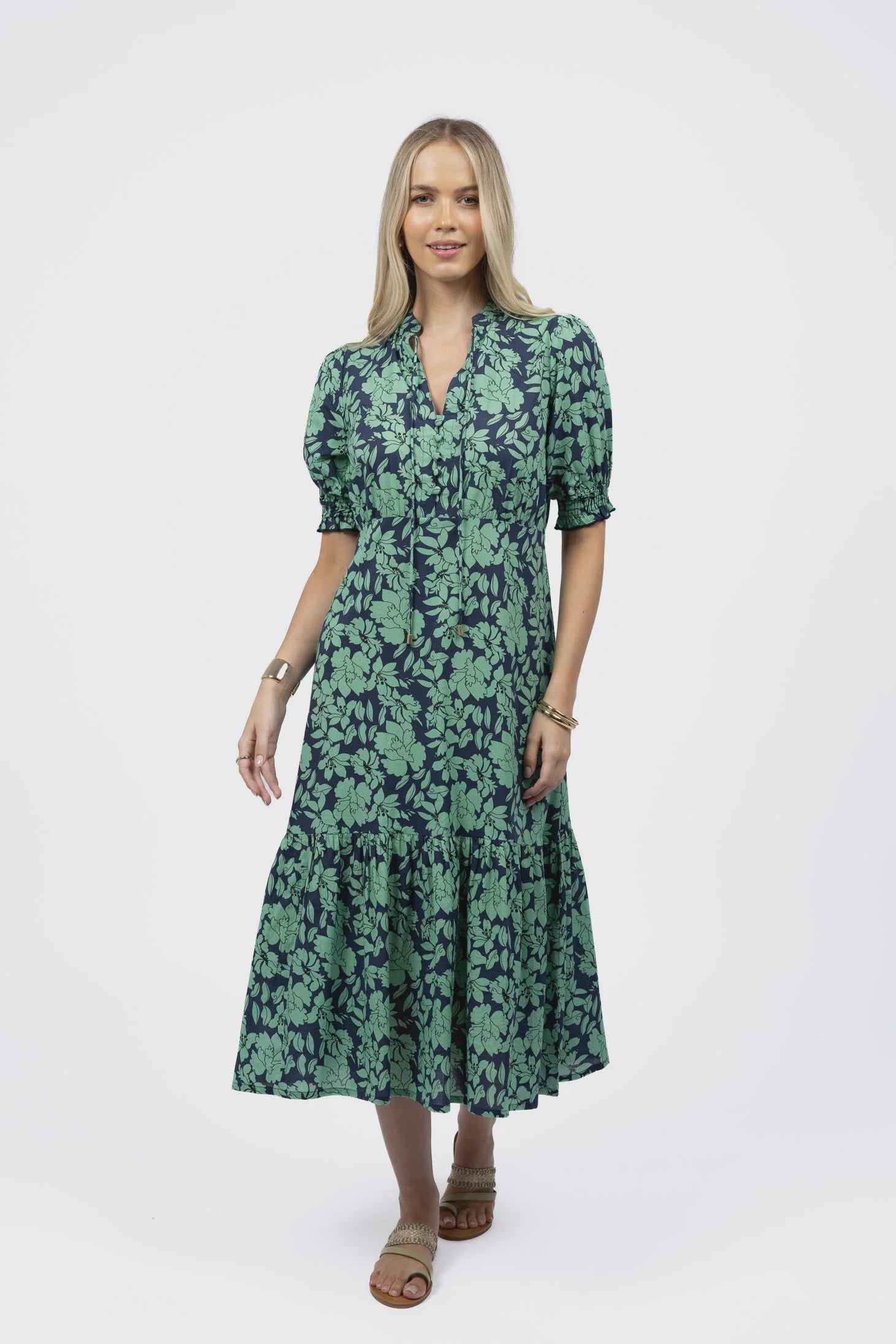 Fleur Midi Dress Mint Navy