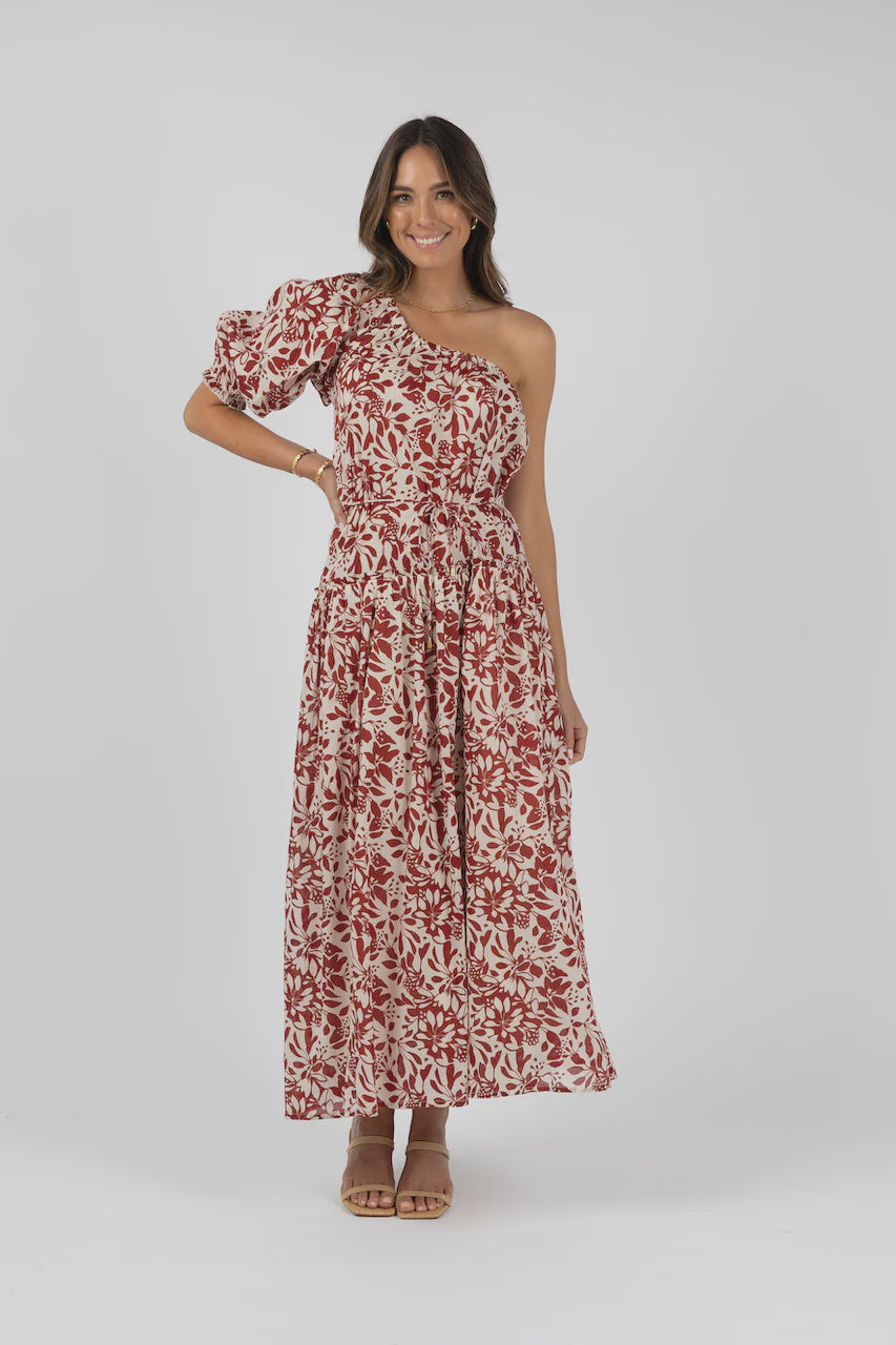 Eden One-Shoulder Dress Brick